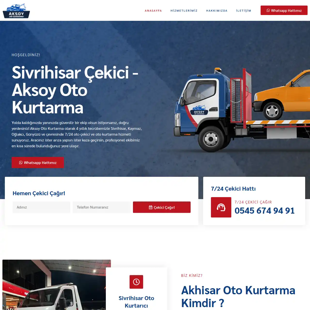 Profesyonel Çekici ve Oto Kurtarma Web Tasarımı